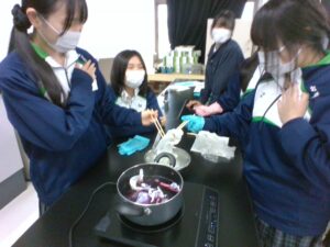 3年生普通科類型 古典購読の授業で草木染め体験  » ラズベリーで草木染