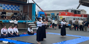 吹奏楽部はコンテナの中をステージとして、「銀河鉄道999」や「ミセスメドレー」、「きらり」など、鉄道の日にちなんだ曲や人気曲を中心に演奏。普段の演奏会とはひと味違うステージで、部員一同も新鮮な気持ちで音楽を楽しむことができました。9人という少人数ではありますが、一人ひとりの力強く温かい音色が会場に響き渡り、観客から大きな拍手が送られました。