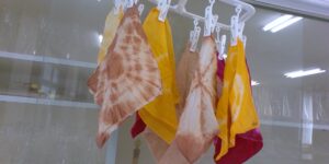 これは今年度、古典講読の最初に扱った和歌です。信夫摺りの乱れ模様の再現まではできませんでしたが、「絞り染め」の技法を体験してみました。少しでも古典に親しみを持ってくれる人が増えてくれるといいな、と思います。