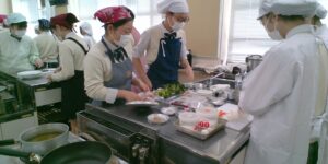 家政科の調理技術と看護科の病院食の知識を融合し、減塩食を作ることができました。