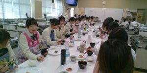 今年度は12月17日に全体発表会、1月13日にグループ学習(献立決め)、1月28日に調理実習を行いました。